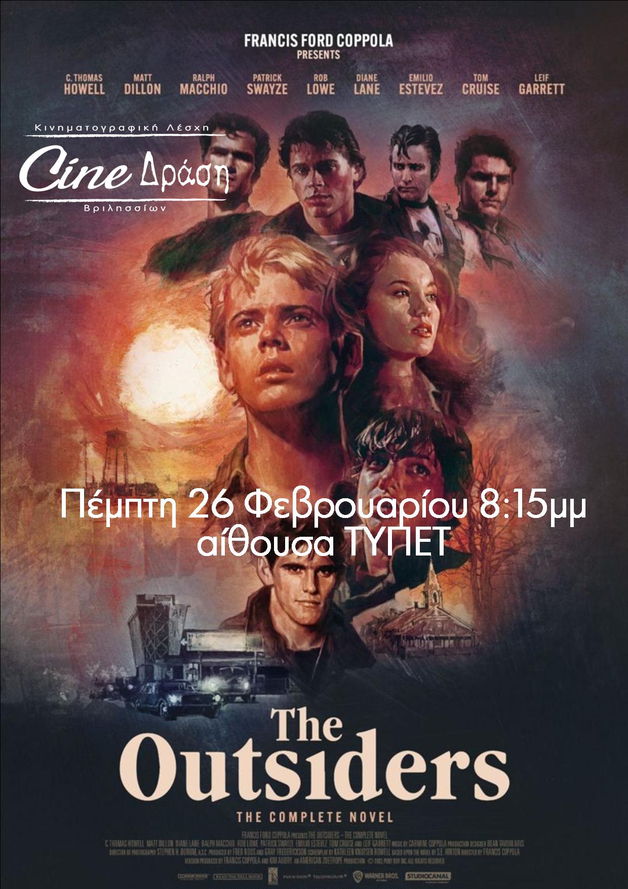 Μπάμπης Δαμουλάνος ΕυαγγελάτοςΤο Cine Δράση συνεχίζει τις προβολές του την Πέμπτη 26 Φεβρουαρίου στις 8:15΄μμ, στο ΤΥΠΕΤ με τους «Επαναστάτες χωρίς Αύριο» του Francis Ford Coppola, που αφορά το τέλος των ψευδαισθήσεων της αμερικανικής νεολαίας. Ελεγειακό, ατμοσφαιρικό φιλμ με λάμψη, συναίσθημα και μεγάλο αντίκτυπο στους θεατές. Οι νεαροί ήρωες με έναν απόκοσμο, ονειρικό τρόπο συναντιούνται, τσακώνονται, μιλάνε, φιλοσοφούν, ερωτεύονται, πίνουν, ανταγωνίζονται με αντίπαλες συμμορίες, μπλέκουν σε παράνομες υποθέσεις, βρίσκονται συνεχώς στο στόχαστρο της αστυνομίας, αναμετρώνται με το θάνατο και ενίοτε πεθαίνουν. Αλλά καθώς το ανελέητο κυνηγητό δεν τελειώνει ποτέ συνειδητοποιούν ότι μεγαλώνουν γρήγορα, η ζωή περνά ανεπιστρεπτί και η επανάστασή τους δεν έχει καμία προοπτική.