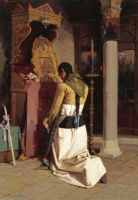 Μπορεί ο έρωτας να χτύπησε δύο, ίσως και τρείς φορές την πόρτα - δεν ήταν σίγουρος, καθώς δεν άκουσε κρότο, πόσο δε μάλλον λυγμό. Ίσως να κοιμόταν, ίσως να ήταν αφημένος σε σκέψεις... Πιο πρακτικές - κατά το πλείστον αναγκαίες. Συνέχισε όμως συχνά να κοιτάζει απ' το παράθυρο, να ανοίγει τις νύχτες την εξώπορτα σιγουρεύοντας την απουσία, καθώς τον τύλιγε ανεπαίσθητα με τα βαριά διάφανα πέπλα του ο χρόνος. Κάποιο βράδυ ένιωσε ξαφνικά μια αδιόρατη παρουσία στο δωμάτιο. Σηκώθηκε αργά, στις μύτες των ποδιών, ερευνώντας διστακτικά το σπίτι. Όχι, θα τον γέλασε το όνειρο. Όχι, δεν ήταν κανείς. Κανένας, ήταν σίγουρος. Μόνο που σαν σύννεφο, άρχισαν να απλώνονται παιδικά γέλια σαρώνοντας τον χώρο, πηδώντας από ψιθύρους σε ιαχές θριάμβου, δονώντας τους ανήλιαγους έρημους τοίχους. Πανικόβλητος άνοιξε όλα τα παράθυρα ως αναζήτηση διαφυγής, αλλά τα γέλια χόρευαν ήδη εντός του. Κλαίγοντας, έπεσε στα γόνατα κρύβοντας το πρόσωπο του μέσα σε απόκοσμους λυγμούς, μέχρι που τον κύκλωσαν ολομέταξα πορφύρα κύματα, κυλώντας τον σε μια θάλασσα μακρινή, χορτασμένη από κάθε είδους έννοια. ΧΡΗΣΤΟΣ Ι. ΒΑΤΟΥΣΙΟΣ ΠΙΝΑΚΑΣ: Edward Atkinson Hornel, Ο χορός της Άνοιξης.
