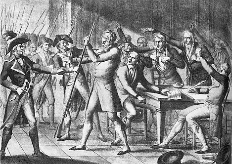 Οι λέσχες και ο δρόµος Το φθινόπωρο του 1792 γίνονται γενικές εκλογές στη Γαλλία, για πρώτη φορά µε καθολική ψηφοφορία. Καθολική τρόπος του λέγειν δηλαδή, αφού ναι µεν το δικαίωµα ψήφου έχει αποσυνδεθεί από τα εισοδηµατικά κριτήρια που ίσχυαν στο παρελθόν, αλλά αφορά µόνο άντρες και µάλιστα από 25 χρονών και πάνω. Οι εκλογές έχουν µικρή συµµετοχή -περί το 15%- και η πρώτη συνεδρίαση της νέας εθνοσυνέλευσης που προέκυψε από αυτές είναι προγραµµατισµένη συµπτωµατικά για την εποµένη της µάχης του Βαλµύ. Η νέα εθνοσυνέλευση είναι δηµοκρατική. Οι βασιλικοί έχουν σχεδόν εξαφανιστεί εξαιτίας όσον προηγήθηκαν και οι δηµοκρατικοί, αφού δεν έχουν πια βασιλικούς να αντιµάχονται, αρχίζουν να τσακώνονται µεταξύ τους. Ετσι δηµιουργούνται δυο ισχυροί πόλοι αντιµαχόµενων, γύρω από τις λέσχες των Ιακωβίνων και των Γιρονδίνων. Οι λέσχες, που πολλές από αυτές λειτουργούσαν και πριν την επανάσταση, ήταν τόποι συνάθροισης και ανταλλαγής απόψεων που σταδιακά απέκτησαν κοινές θέσεις απέναντι στα πολιτικά ζητήµατα και ανάλογο πολιτικό προσανατολισµό, ήταν δηλαδή οι πρόδροµοι των πολιτικών κοµµάτων. Στις γαλλικές εθνοσυνελεύσεις κάποιοι βουλευτές ανήκαν σε λέσχες οι πολλοί όμως ήταν ανένταχτοι. Οι λέσχες, σαν οργανωµένες που ήταν, είχαν πιο συγκροτηµένες απόψεις, προτάσεις κλπ και έδιναν τον τόνο, κυρίως οι ισχυρότερες από αυτές. Οι ανένταχτοι ή οι µικρότερες λέσχες πήγαιναν πότε µε τον ένα και πότε µε τον άλλο και έδιναν την πλειοψηφία. Όταν λοιπόν λέμε ότι στην τάδε εθνοσυνέλευση επικρατούσαν πχ οι Ιακωβίνοι εννοούµε ότι επικρατούσαν οι απόψεις των Ιακωβίνων, γιατί οι ίδιοι αριθµητικά ήταν µειοψηφία. Επίσης, ακριβώς για αυτό το λόγο, οι πλειοψηφίες µπορούσαν να αλλάξουν σε µια στιγµή, αρκεί οι ανένταχτοι να άλλαζαν στρατόπεδο. Θεωρητικά οι απόψεις των δυο ισχυρότερων (δηµοκρατικών) λεσχών της εποχής -Γιρονδίνοι και Ιακωβίνοι- ήταν πολύ κοντά, όμως στην πράξη οι διαφορές ήταν µεγάλες. Οι Γιρονδίνοι ήταν χαλαρότεροι σε οργάνωση, πιο ανοιχτοί σε συµµαχίες -είχαν δεχτεί µάλιστα να αποτελέσουν τον κορµό της τελευταίας βασιλικής κυβέρνησης -και µε µικρή επιρροή στο Δρόµο, κυρίως γιατί εξέφραζαν συµφέροντα της επαρχίας (ανάµεσα στα άλλα προωθούσαν και την ισχυροποίηση των περιφερειών, ένα είδος οµόσπονδου κράτους δηλαδή) που πολλές φορές έρχονταν σε αντιπαράθεση µε τα δικά του. Αντίθετα οι Ιακωβίνοι ήταν πιο σφιχτοί οργανωτικά, καθόλου διαλλακτικοί, ήταν αστοί, ήθελαν ένα ισχυρό συγκεντρωτικό κράτος και πίστευαν ότι εκφράζουν το Δρόµο, στην πράξη ότι αυτοί είναι η επανάσταση. Και ο Δρόµος; Ποιος ήταν ο Δρόµος; Στην Γαλλία οι εξεγερµένοι του Παρισίου είναι γνωστοί σαν sans cylottes (σαν κιλότ), ένας όρος που µεταφράστηκε στα Ελληνικά “Αβράκωτοι”. Όμως κιλότ ονοµάζονται εκείνα τα στενά µεταξωτά παντελόνια -περίπου σαν κολάν- µέχρι λίγο κάτω από το γόνατο που φορούσαν οι ευγενείς και οι µεγαλοαστοί και βλέπουµε στα έργα εποχής, σε αντίθεση µε τα φαρδιά παντελόνια που φορούσαν όλοι οι υπόλοιποι. Άρα sans (χωρίς) cylottes ήταν αυτοί που δεν φορούσαν κιλότ, οι παντελονάτοι, στην ουσία οι µη προνοµιούχοι. Και για να το εξειδικεύσουµε και λίγο, το µεγάλο κοµµάτι των µη προνοµιούχων (από πάµφτωχους λιµοκτονούντες µέχρι αστούς µικροκαταστηµατάρχες, φοιτητές κλπ) που είχε ενεργό παρουσία στα δρώµενα -και τους δρόµους. Ο Εµφύλιος και η Αντεπανάσταση Στην πρώτη της συνεδρίαση η Ε
